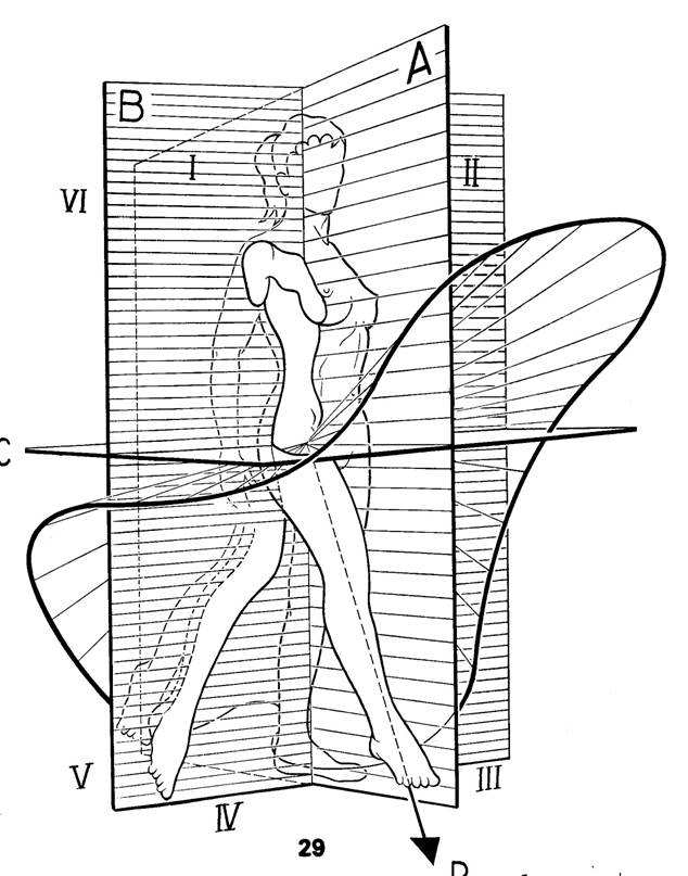 Any joint has a theoretical maximum range of movement beyond which the bones will impinge against each other. The hip is a ball and socket joint that has evolved to provide the best functional range before impingement. Note that the shape of the extreme range reflects the shape of the acetabulum:-