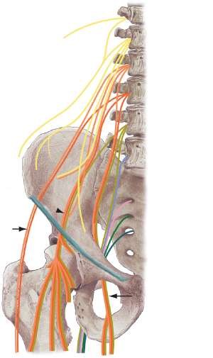 Anterior branches of the anterior primary rami of L2, L3, and L4 fuse to form this nerve. The major contribution is from L3, and the least amount of contribution typically is from L2. The rami fuse in the substance of the psoas muscle and emerge from the medial border of the psoas beneath the common iliac vessels just lateral to the sacrum. The obturator nerve then travels along the lateral wall of the true pelvis to enter the obturator foramen. Just anterior to the internal obturator muscle and prior to entering the thigh, the nerve divides into an anterior and a posterior branch.